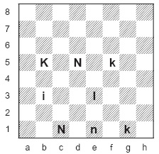 Each letter represents a different type of piece. Upper case is one colour, lower case is the other. Determine the positions.